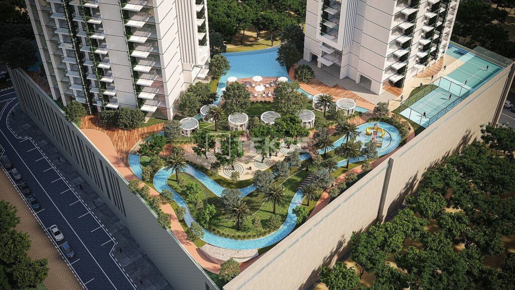 The apartments are located in an area suitable for city life in Dubai, City of Arabia. The furnished apartments suitable for investment are offered with long-term flexible installment plans.